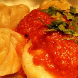 Nepalese style dumpling with a minced lamb filling served with a special tomato chutney